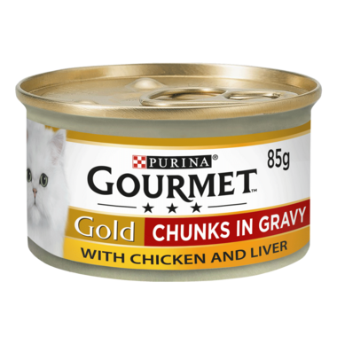 Purina Gourmet Gold Chunks In Gravy, With Chicken & Liver, Cat Food, 85g, Tin