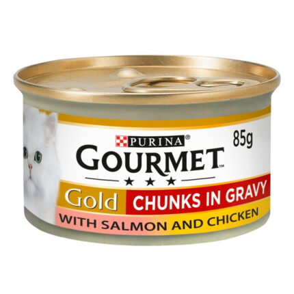 Gourmet Gold Salmon & Chicken In Gravy Wet Cat Food Tins – 12 X 85g