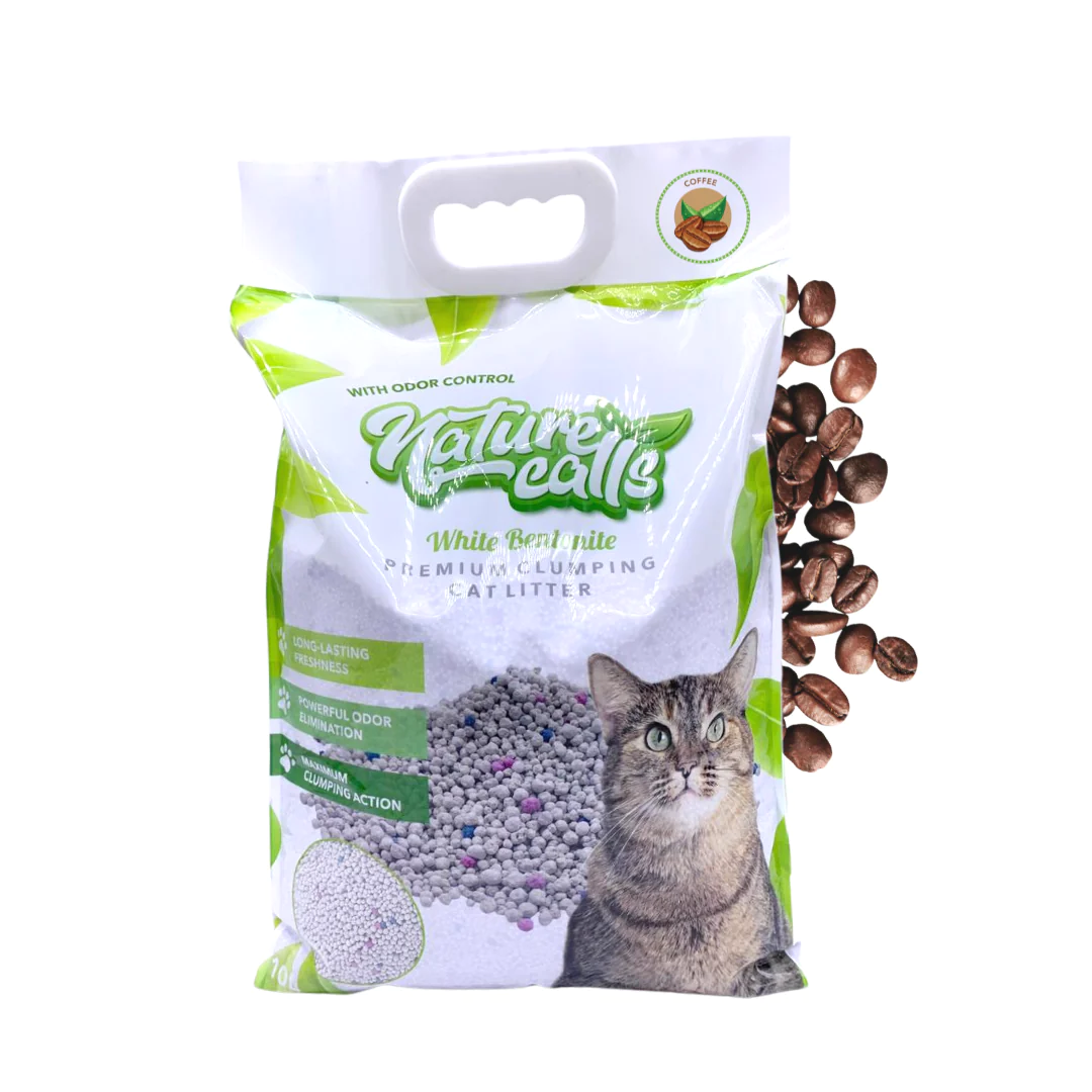 Nature Calls is an imported white bentonite clumping cat litter. Available in multiple scents, this imported litter is a cut above the local litter brands (usually darker/black clay sand). White bentonite clumps very well, has low dust, and has excellent odor control.